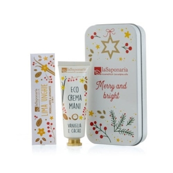 LA SAPONARIA Scrigno Merry and Bright Crema Mani Vaniglia e Cacao + Limetta Unghie Dolci Coccole