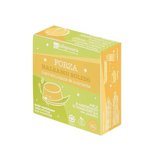 Forza è un balsamo solido che si prende cura dei tuoi capelli, della tua cute e del nostro Mondo! L’estratto di amla stimola la crescita dei capelli e i dolci amminoacidi di barbabietola idratano e rinforzano la chioma. L’olio di cocco e il burro di cacao donano forza e vitalità anche alle punte più secche e danneggiate mentre la curcuma rende i capelli luminosi e lucenti grazie alla sua potente azione antiossidante. Contiene anche olio di semi di lino, ricco di Omega 3, che svolge un’azione rigenerante ideale per le chiome spente, secche e sfibrate. Lo speciale pH acido chiude le squame del capello e contrasta l’effetto crespo.