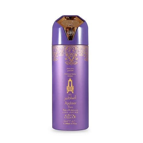 Asateer Ruaa Nabeel, deodorante unisex 200 ml. Un’incantevole fragranza caratterizzata dalla dolcezza delle bacche rosse e dell’arancia, un elegante cuore floreale di gelsomino e rosa e una lussuosa base di oud, vaniglia e ambra.