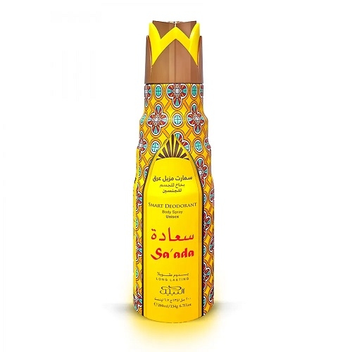Sa’ada Nabeel, deodorante unisex 200 ml. Una fragranza che cattura l’essenza della gioia in ogni sua incantevole nota regalando sorrisi ad ogni spruzzo. La composizione semplice ma affascinante si apre con un dolce abbraccio di rosa, un invitante cuore tropicale di cocco e note marine e una base confortante di patchouli e vaniglia.