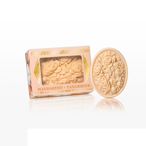 Frizzante e di carattere questa fragranza ci trasporta in un agrumeto ricco e colorato. Un elegante motivo floreale scolpito impreziosisce questo sapone di alta qualità. Il profumo delizioso del mandarino si manterrà a lungo sulla tua pelle facendoti sentire sempre fresca e in armonia con te stessa.