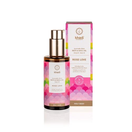 L’Olio Elisir Rose Love khadi, insieme all’Olio Elisir Shatavari Everyoung khadi e all’Olio Elisir Pink Lotus Beauty khadi, costituiscono la linea di Oli per il Corpo “Holy Body”. Holy Body è sinonimo di un trattamento olistico per il corpo e i sensi, per aiutarti a far risplendere la tua bellezza interiore anche all’esterno.