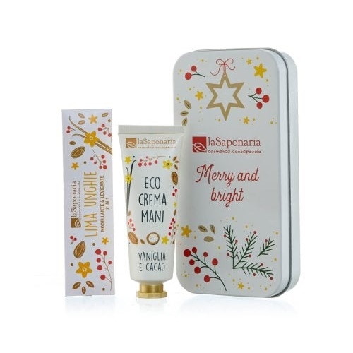Scrigno in latta super carino con crema mani alla vaniglia e lima unghie