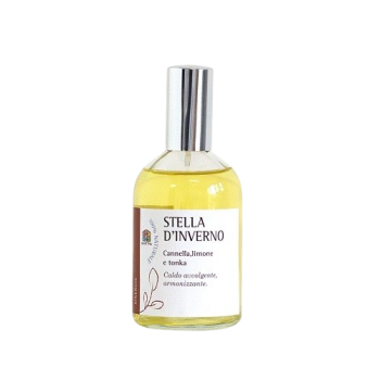 INCI: Alcohol Denat. (Alcohol di Grano Bio), Citrus Grandis Peel Oli, *Limonene, Cananga Odorata Flower Oil, Eugenia Caryphyllus Flower Oil, Myristica Fragrans Kernel Oil, Cinnamomum Zeylanicum Bark Oil, Benzyl Benzoate, Benzyl Salicylate, *Eugenol, *Farnesol, *Geraniol, *Isoeugenol, *Linalool. *presente naturalmente negli oli essenziali.