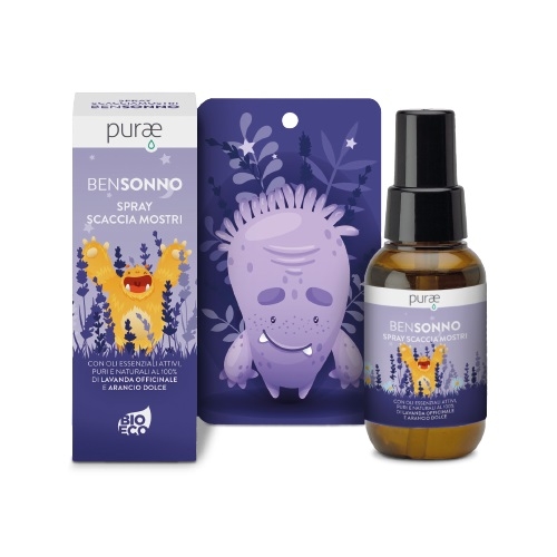 MODO D’USO: nebulizzare nella stanza del bimbo, sul cuscino e sul pigiama da 30 cm di distanza 10 minuti prima di coricarsi. Oppure utilizzarlo sulla tessera del mostro presente sul pack e appenderla vicino al letto.