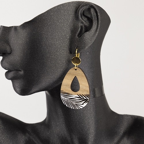 Orecchini con ciondolo in legno di noce.