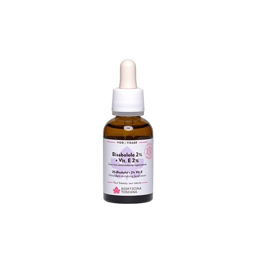 Un siero viso antiossidante-rigenerante a base di Bisabololo e Vit. E. È arricchito da un esclusivo estratto bio di mirtillo toscano. Il Bisabololo al 2% ha una funzione lenitiva e calmante. La Vit. E ha spiccate proprietà antiossidanti e protegge da fenomeni naturali degenerativi come il fotoinvecchiamento.