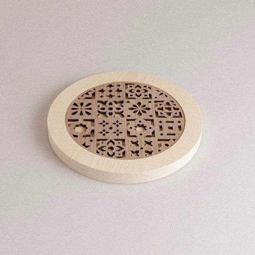 Sottopentola in legno massiccio di abete con inserto in legno di noce.