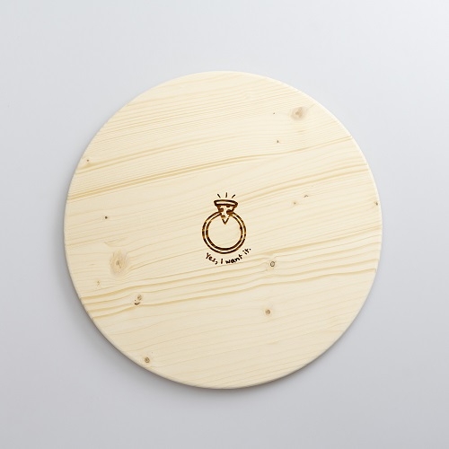 Tagliere tondo in legno di abete per la pizza con disegno timbrato.