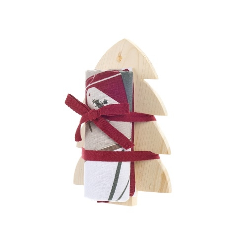 Christmas is Coming Albero in Legno con Strofinaccio in Cotone Disegno B