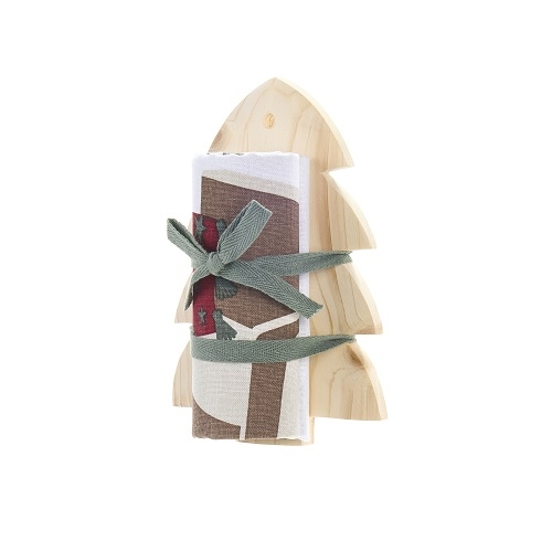 Christmas is Coming Albero in Legno con Strofinaccio in Cotone Disegno F