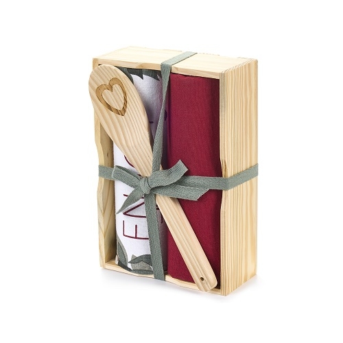 Christmas is Coming Set Strofinaccio in Cotone con Mestolo e Scatola Legno