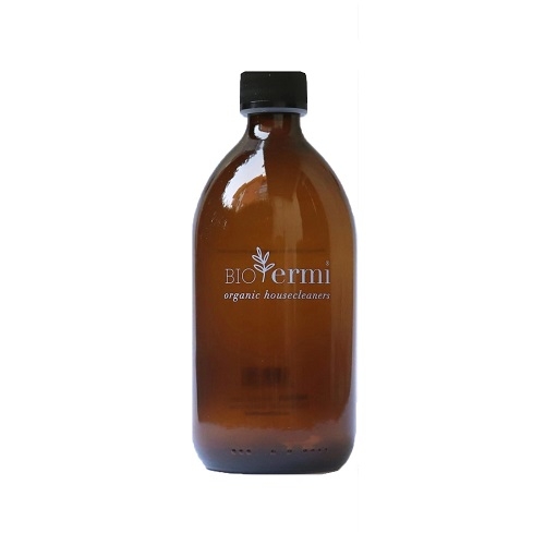 Bottiglia Serigrafata in Vetro Bioermi da 500 ml. Ideata per diluire i Detergenti Super Concentrati, con spazio sul retro riservato all’apposizione dell’etichetta di detergenza: per una detergenza casa coloratissima e zero-waste!