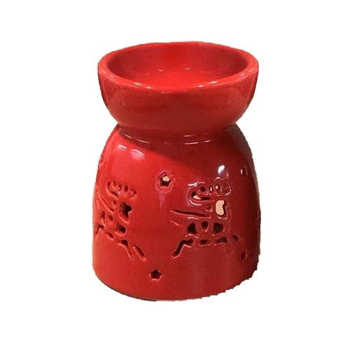 Brucia Essenza per Cera Profumata in Ceramica Babbo Natale e Slitta Rosso