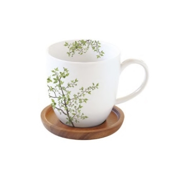 EASY LIFE Natura Mug in Porcellana con Coperchio/Sottobicchiere in Acacia capacità 350 ml