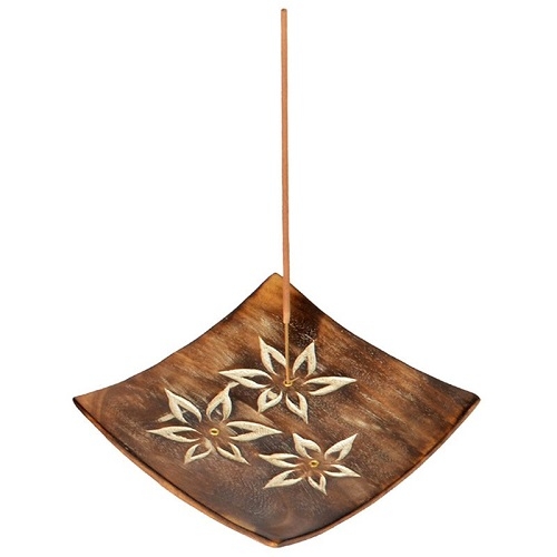 Brucia Incenso Quadrato in Legno Mango Fiori Intagliati