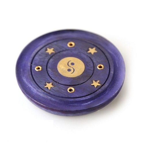 Brucia Incenso Rotondo in Legno Mango Viola Yin Yang