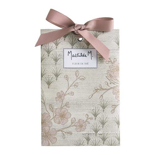 Elegante sacchetto profumato, delicata in tutti i piccoli spazi, come gli armadi, i cassetti, le valigie e le automobili con Fleur de Thé, un profumo morbido e avvolgente il cui profumo floreale di fiori di tè e rosa si mescola a quello di bergamotto, vaniglia e ambra.