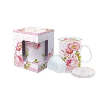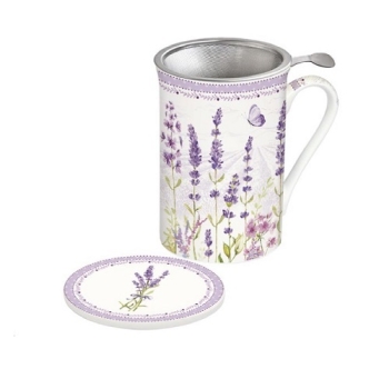 EASY LIFE Lavender Field Mug e Sottobicchiere in Porcellana Fine China con Infusiera in Metallo capacità 300 ml