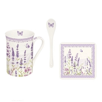 EASY LIFE Lavender Field Set Tazza e Cucchiaino in Porcellana Fine China con Sottobicchiere capacità 300 ml