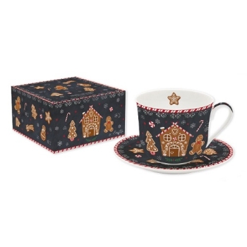 EASY LIFE Gingerbread Tazza Colazione con Piatto in Porcellana Fine China in Colour Box capacità 400 ml