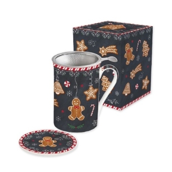 EASY LIFE Gingerbread Mug e Sottobicchiere in Porcellana con Infusiera in Metallo in Colour Box capacità 300 ml