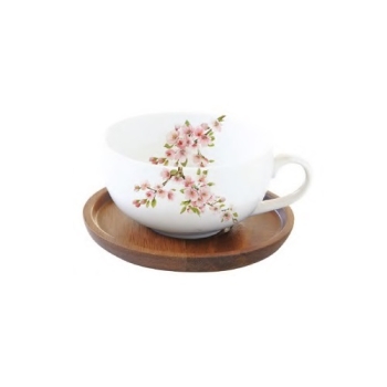 EASY LIFE Sakura Tazza in Porcellana con Piattino in Acacia capacità 250 ml