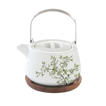 EASY LIFE Natura Teiera in Porcellana con Sotto Teiera in Acacia capacità 750 ml
