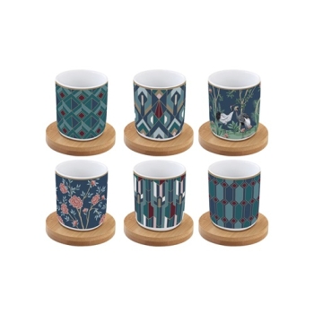 EASY LIFE Mandalay Set 6 Bicchierini Caffè in Porcellana con Piattino in Bambù in Scatola Regalo capacità 110 ml