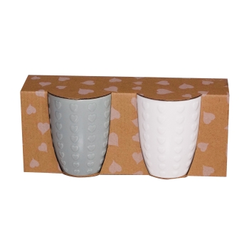 NUVOLE DI STOFFA Set 6 Tazzine con Piattini Cuori Grigia Bianca