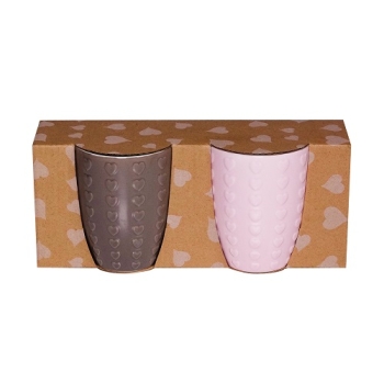 NUVOLE DI STOFFA Set 6 Tazzine con Piattini Cuori Marrone Rosa