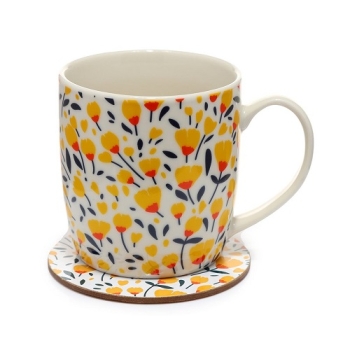 PUCKATOR Set Tazza e Sottobicchiere in Porcellana Ranuncolo