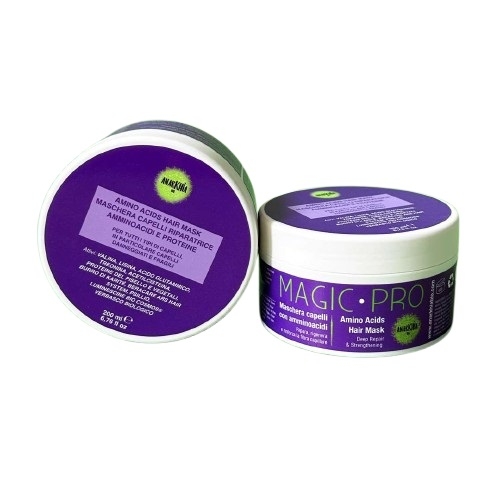 Maschera Amminoacidi e Proteine Riparatrice – Maschera dalla texture cremosa che racchiude un pool di amminoacidi e proteine per garantire una ristrutturazione profonda del fusto: Acetilcisteina (non di origine animale), Acido glutammico, Lisina, Treonina, Valina e proteine vegetali. Gli amminoacidi sono essenziali per la costruzione della cheratina, primaria proteina della fibra capillare, e hanno un ruolo fondamentale nella protezione del bulbo dallo stress ossidativo e nella riparazione del fusto dai danni superficiali. Quando si verifica un deficit proteico, i capelli tendono ad assottigliarsi, a diventare spenti e difficili da gestire. L’assorbimento topico e del fusto è promosso nella cosmesi ed è molto utile per integrare e rinforzare la struttura cheratinica e per garantire un apporto maggiore di questi elementi al cuoio capelluto ed alle radici.