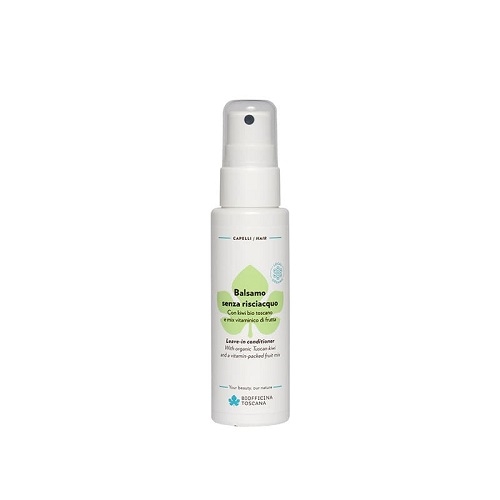 Un balsamo senza risciacquo con estratti di frutta ricchi di zuccheri, alfa-idrossiacidi e vit. C: kiwi bio toscano, albicocca, arancio, limone e ananas. Una spremuta di frutta con fattori antiossidanti, idratanti e protettivi per il capello, potenziati dall’azione sinergica dei semi di lino e della “cheratina” vegetale che nutrono, rafforzano e condizionano. Svolge un’azione districante, disciplinante ed anticrespo, proteggendo i capelli e lasciandoli morbidi, leggeri e piacevolmente profumati.