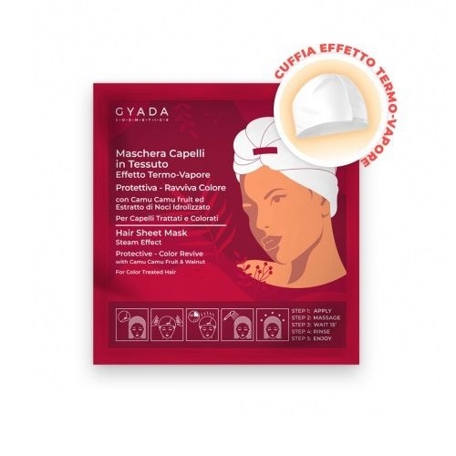 La maschera capelli in tessuto Gyada Cosmetics è un trattamento potenziato in grado di donare un risultato professionale; la speciale cuffia ad effetto termico sviluppa calore durante l’applicazione della maschera, favorendo l’assorbimento dei suoi attivi nella fibra capillare.
