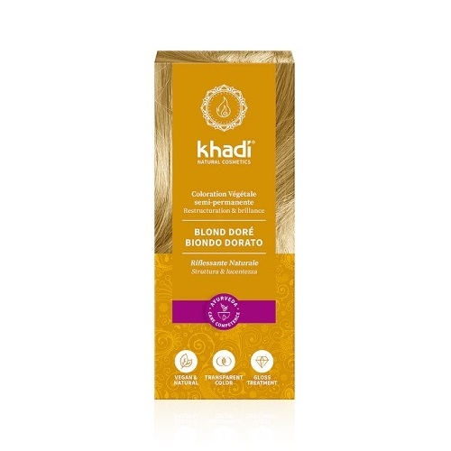 La nuance Biondo Dorato khadi è una tinta semi-permanente che dona ai capelli chiari, grigi o bianchi riflessi dorati e ramati. I capelli pigmentati, invece, assumeranno caldi riflessi dorati.