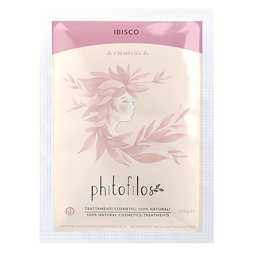 Polvere pura di fiori di Ibisco essiccati e polverizzati. L'Ibisco (Hibiscus Sabdariffa), conosciuto con il nome di Carcadè o Tè rosa dell'Abissinia, è una grande pianta erbacea appartenente alla famiglia delle Malvaceae. E’ originario delle Indie occidentali, ma diffuso anche in Asia (India, Sri Lanka) ed Africa (Etiopia, Sudan). I principi attivi caratterizzanti sono: acidi organici (acido ibiscico, acido citrico, acido ossalico, acido tartarico, acido malico), antociani, acido ascorbico, tannini, mucillagini, fitosteroli e pigmenti (che conferiscono il caratteristico colore rosso/viola intenso). L'Ibisco, il cui nome ayurvedico è Jaswand, è utilizzato tradizionalmente per i trattamenti cosmetici atti a prevenire la caduta dei capelli e per mantenerli morbidi e districati, forti e lucidi, ma anche per le sue ottime capacità tintorie, se lavorato nella dovuta maniera.