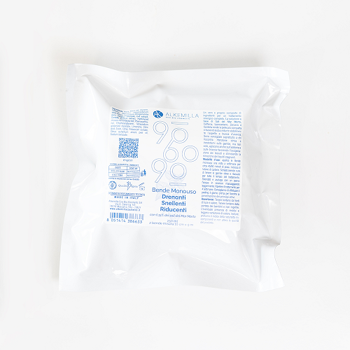 Un vero e proprio composto di ingredienti per un trattamento sinergico completo. Le bende, imbevute di una soluzione salina funzionale, aiutano a drenare gambe stanche e con ritenzione idrica, favorendo l’ossigenazione dei tessuti e stimolando la rimozione dei liquidi stagnanti. La soluzione a base di Sali del Mar Morto, Caffeina, Ippocastano, Zenzero e Centella rende la pelle più compatta e liscia ed aiuta a ridurre visibilmente l'aspetto a buccia d'arancia. Sono consigliate soprattutto a chi riscontra ritenzione idrica e cellulite sulle gambe, ma non solo, agiscono anche sull’addome o sulle braccia e non vi sono particolari controindicazioni nel loro utilizzo. Alla fine di ogni trattamento, ammirerai la silhouette del tuo corpo che apparirà più snella, sgonfia e leggera la pelle invece risulterà meravigliosamente tonica e levigata.
