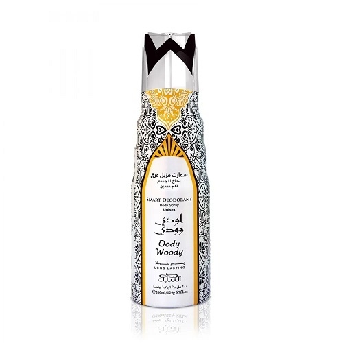 Oody Woody Nabeel, deodorante unisex 200 ml evoca una passeggiata nei boschi, con la luce del sole che passa attraverso gli alti alberi, illuminando le diverse tonalità di verde delle foglie. Una fragranza tonificante, che dona un senso di leggerezza, una magica miscela fruttata-floreale-legnosa di mughetto, rosa, legno di cedro e sandalo.