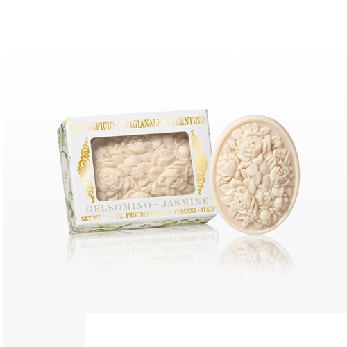 Dai toni dolci il gelsomino ha una fragranza intensa ed inebriante. Lievi note fruttate lo rendono particolarmente affascinante. Questo sapone, realizzato con ingredienti di alta qualità e completamente di origine vegetale, offre queste caratteristiche olfattive trasportando i sensi e migliorando l’umore. Idratante e detergente lascia la pelle profumata a lungo.