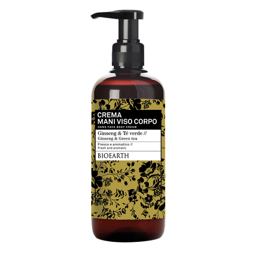 CREMA MANI VISO CORPO PER TUTTA LA FAMIGLIA al delicato profumo fresco e aromatico, con olio di Cocco ed estratti di Ginseng e Tè verde BIO.