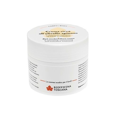 Una crema ricca di emollienti, tra cui il pregiato olio di olivello spinoso toscano bio con notevoli proprietà antiossidanti, protettive e restitutive che le conferisce una colorazione aranciata. L’olivello spinoso è coadiuvato dall’olio bio di girasole e da mirati estratti ad azione lenitiva e tonificante per un trattamento nutriente e restitutivo. Adatto a pelli secche, mature, o per chi vuole un’idratazione profonda ed ama consistenze dense e morbide. Si assorbe facilmente lasciando la pelle idratata e dolcemente profumata.