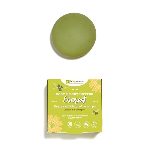 Crema solida piedi e corpo. Arnica & Ginepro. Post-sport - Distensiva – Rigenerante. Profumo fresco e balsamico.