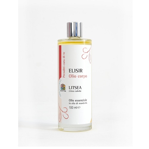 Olio corpo da massaggio. Olio di mandorle dolci spremuto a freddo arricchito da olio essenziale di Litsea.