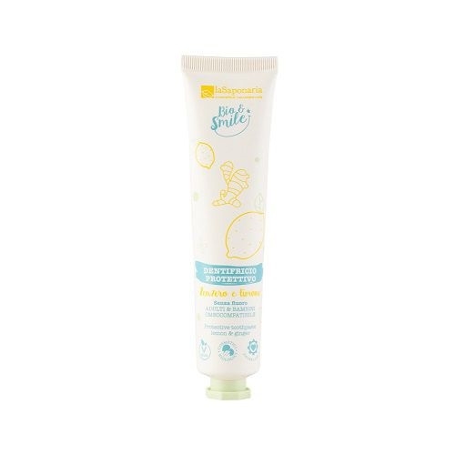 Dentifricio delicato omeocompatibile per adulti e bambini. A base di oli essenziali di Zenzero e Limone biologici