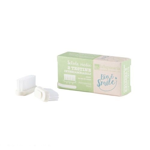 Lo spazzolino in fibre vegetali Bio&Smile, realizzato in acetato di cellulosa 100% naturale e biodegradabile, ti permette di cambiare e sostituire solamente le setole del tuo spazzolino senza buttarlo, andando a ridurre del 92% i rifiuti nel nostro pianeta. Le setole di questa testina di ricambio sono fatte in olio di ricino, perfette per svolgere una delicata azione pulente su denti e gengive garantendo un’igiene perfetta di tutta la tua bocca! Una scelta che farà bene ai tuoi denti, all'ambiente e anche al tuo portafogli! :)