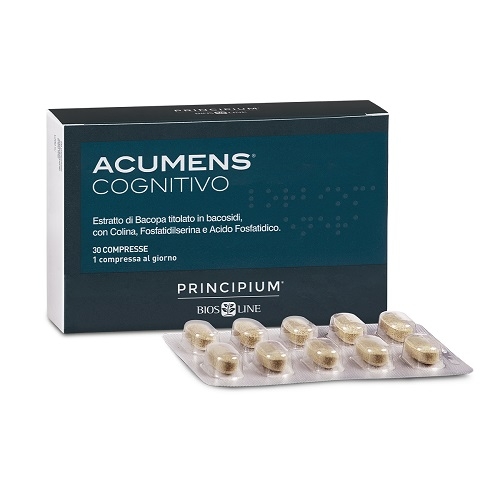 Acumens Cognitivo contiene Bacopa, utile per favorire le funzioni cognitive e sostenere la memoria, Colina e Fosfatidilserina, importanti costituenti delle membrane cellulari delle cellule nervose.