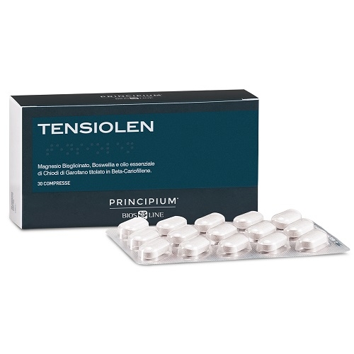 Tensiolen contiene Magnesio bisglicinato, che favorisce il normale funzionamento del sistema nervoso e della funzione muscolare, e gommo-resina di Boswellia titolata in Acidi Boswellici, utile per contrastare gli stati di tensione localizzati.