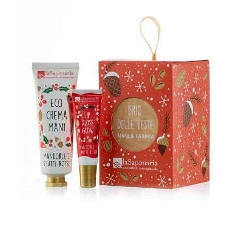 La lanterna contiene una Crema mani Mandorle e frutti rossi e un Lipgloss Glow