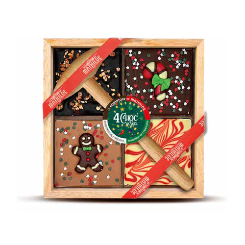 Box tavolozza di 4 cioccolati decori assortiti, con martello in legno